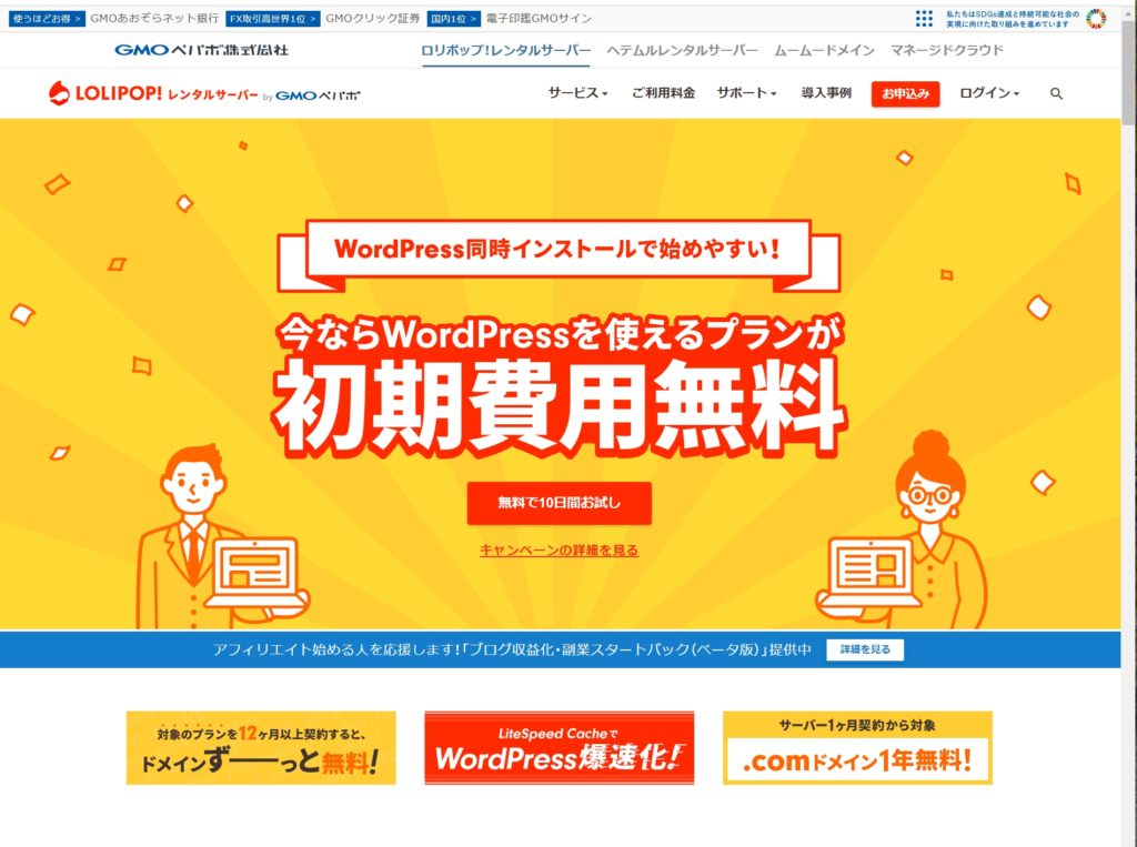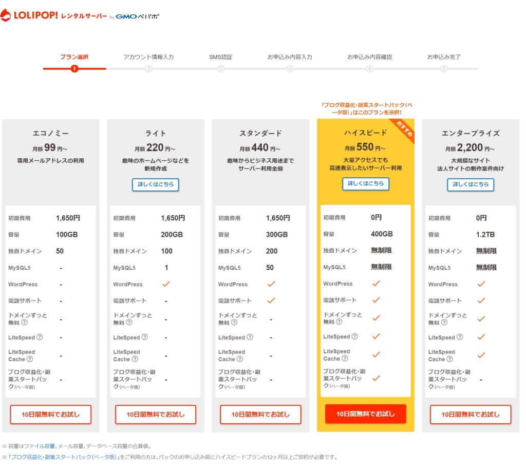 【ハイスピード】・【1年契約】・【無料独自ドメイン】の場合