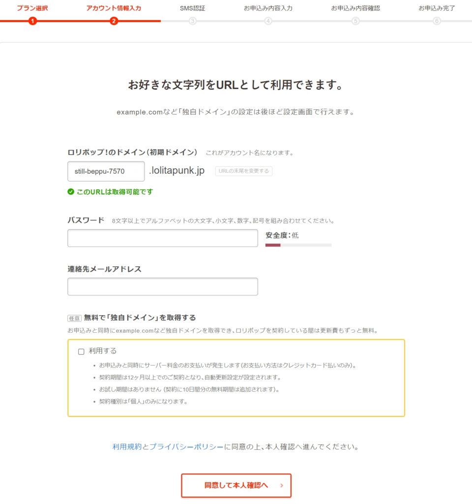 「連絡先メールアドレス」・・・・・ロリポップとの連絡に使用するメールアドレスを入力する。