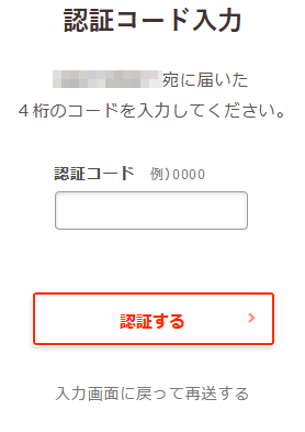 ⑥上記本人確認画面で入力した電話番号にSMSが送信されるので、記載されている4桁の認証コードを入力して、「認証する」をクリックする。