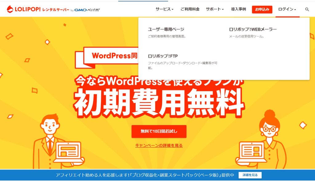 ⑩本契約するために、「ログイン」の「ユーザー専用ページ」をクリックする。