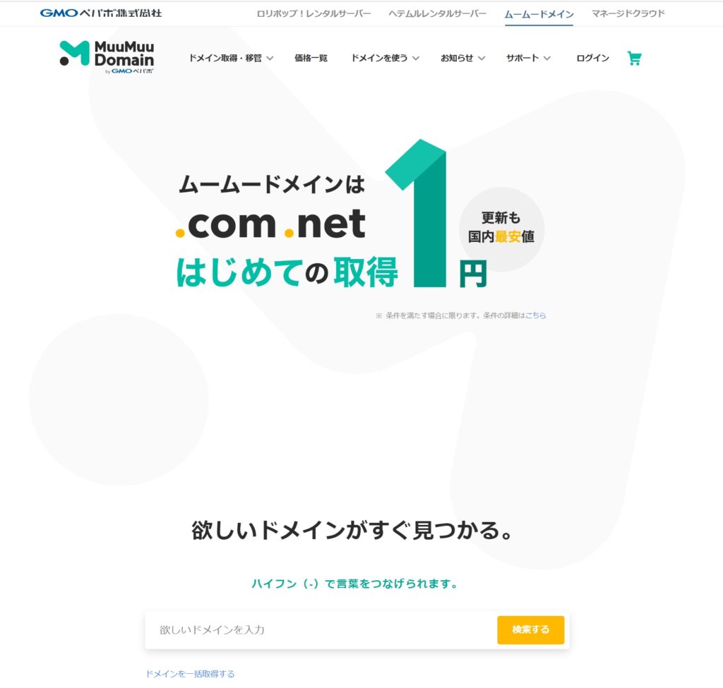 ムームードメインの画面へ移動する。
