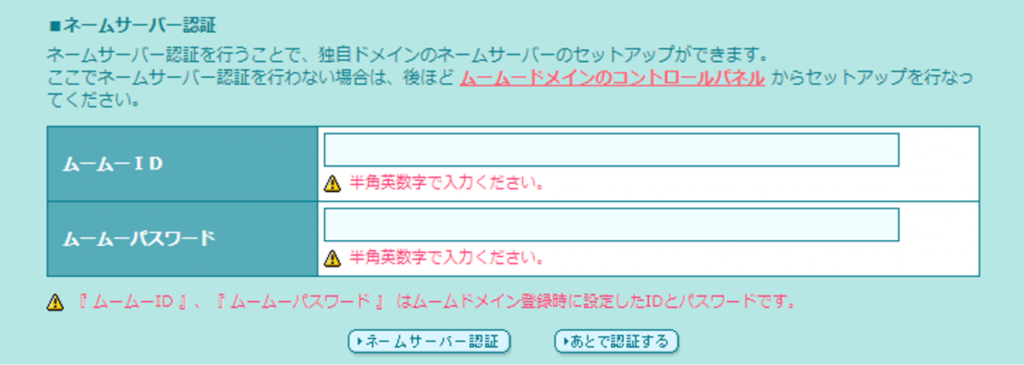 ムームードメインのIDとムームーパスワードを入力する。